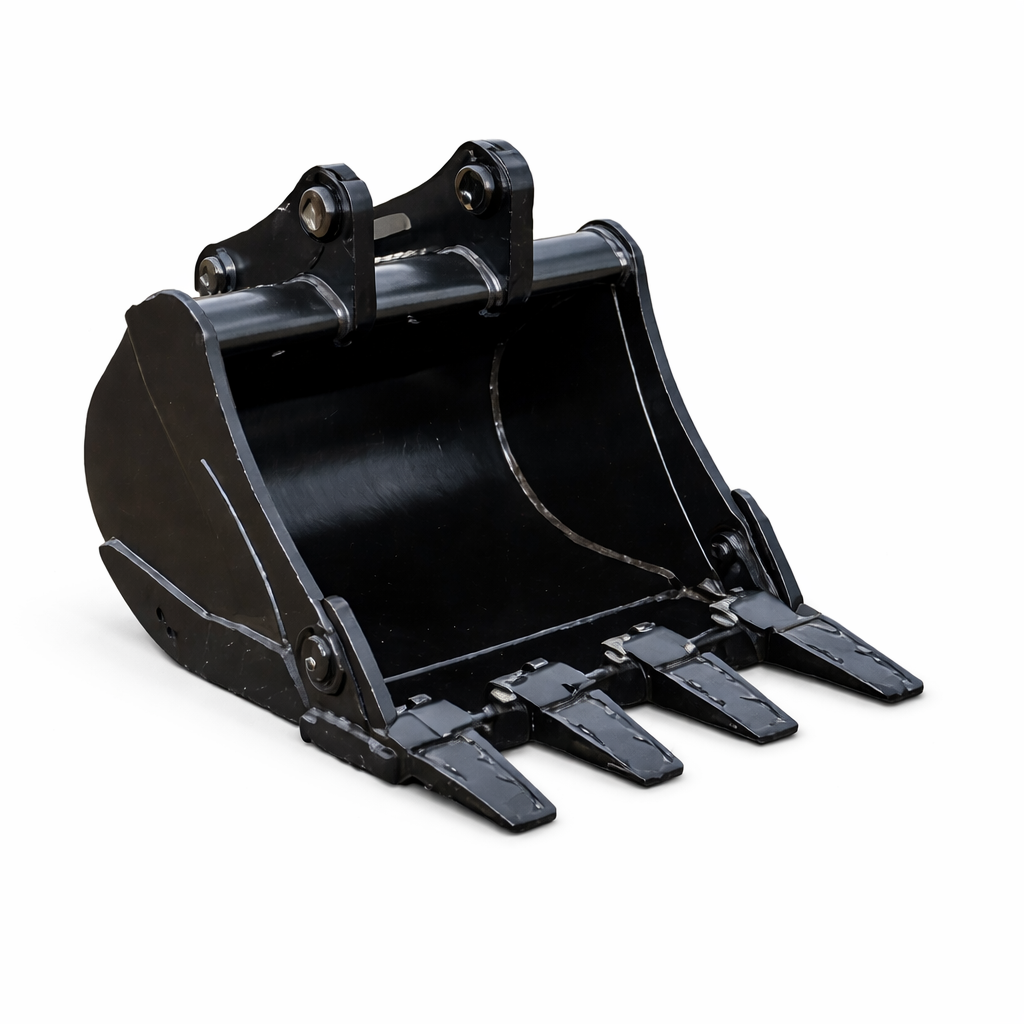 Godet mini-pelle robuste pour tranchées et terrassement : coupe efficace, acier renforcé, idéal chantier & aménagement.
